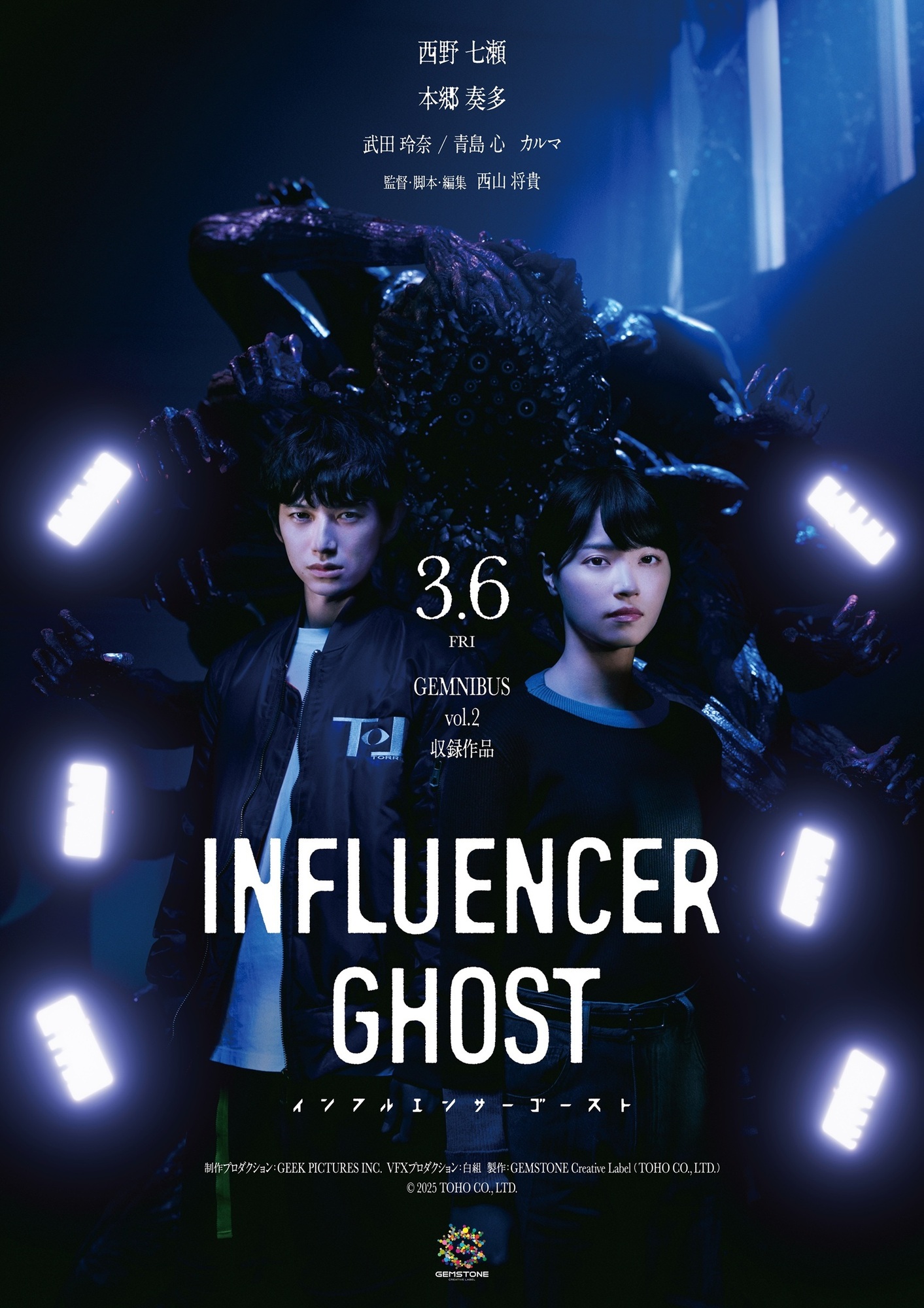 『GEMNIBUS vol.2』「インフルエンサーゴースト」本日より公開! NEW 2026.03.06 MOVIE Tweet シェア 短編映画「インフルエンサーゴースト」が本日より公開になります。 ◆『GEMNIBUS vol.2』 ◆「インフルエンサーゴースト」 本日より、TOHOシネマズ日比谷にて1週間限定公開